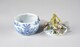 sur une des parties de l'objet, récipient, assise, en bleu sous couverte