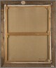sur le cadre, au dos, en haut, recouverte par deux autres étiquettes, illisible -