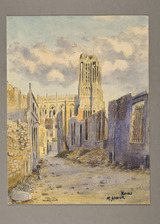- Rue de la Salle à Reims en ruines (recto) ; Chevet de la cathédrale de Reims (verso)