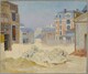Dans une manière impressionniste à la touche épaisse et vibrante, Lepage va devenir un témoin privilégié du chantier permanent qui va transformer la ville. Motifs uniques ou vues sérielles rendent compte successivement des destructions, des déblaiements puis des aménagements qui remodèlent édifices, artères et quartiers. Les décombres font place aux baraques provisoires peuplées de silhouettes esquissées, virgules de matière vivante. [M. Julien, 2025]