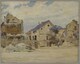 Dans une manière impressionniste à la touche épaisse et vibrante, Lepage va devenir un témoin privilégié du chantier permanent qui va transformer la ville. Motifs uniques ou vues sérielles rendent compte successivement des destructions, des déblaiements puis des aménagements qui remodèlent édifices, artères et quartiers. Les décombres font place aux baraques provisoires peuplées de silhouettes esquissées, virgules de matière vivante. [M. Julien, 2025]