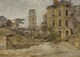Dans une manière impressionniste à la touche épaisse et vibrante, Lepage va devenir un témoin privilégié du chantier permanent qui va transformer la ville. Motifs uniques ou vues sérielles rendent compte successivement des destructions, des déblaiements puis des aménagements qui remodèlent édifices, artères et quartiers. Les décombres font place aux baraques provisoires peuplées de silhouettes esquissées, virgules de matière vivante. [M. Julien, 2025]