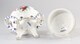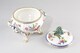 Porcelaine tendre, décor peint polychrome sur couverte, dorureH x L x P en cm : 25 x 27 x 21,5 (ensemble)