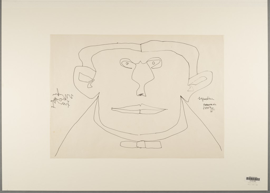 Portrait déformé d’un homme en buste, de face, portant un nœud papillon.
