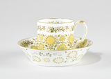 sur une des parties de l'objet, soucoupe, assise, doré