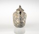 Faïence à décor polychrome, bec et attache en étainH x L x P en cm : 15,2 x 19,1 x 9,7 (ensemble)