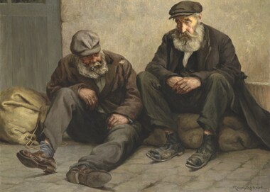 - figure pauvre mendicité homme à mi-corps de trois-quarts haillons casquette pipe