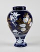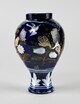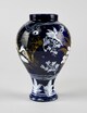 Faïence à décor polychrome de grand feu sur fond bleuH x D en cm : 24,5 x 14,7