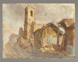 vue d'architecture église maison ruines rue village destruction la guerre
